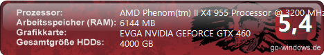 ·· | Mr_Alex (von Mr_Alex) | | CPU: | AMD Phenom(tm) II X4 955 Processor | | RAM: | Readon HD 4890 Vapor-X | | Grafikkarte: | 4096 MB | | · | Donnie's Gaming PC (von Donnie) | | CPU: | AMD Phenom(tm) II X4 955 Processor OC @ 3,85 GHz | | RAM: | Radeon HD 5870 Crossfire | | Grafikkarte: | 8192 MB | | · | Gaming System (von Luftkopf21) | | CPU: | AMD Phenom(tm) II X4 955 Processor | | RAM: | nVidia GeForce GTX 560 Ti | | Grafikkarte: | 4096 MB | | · | Klein aber fein (von metallic) | | CPU: | AMD Phenom(tm) II X4 955 Processor | | RAM: | Radeon HD 5830 @ 5850 | | Grafikkarte: | 4096 MB | | · | Daywalker-X (von Daywalker-X) | | CPU: | AMD Phenom(tm) II X4 955 Processor | | RAM: | NVIDIA GeForce GTX 460 | | Grafikkarte: | 4096 MB | | · | Phantom Power (von LarZzZ) | | CPU: | AMD Phenom(tm) II X4 955 Processor | | RAM: | Gainward GeForce GTX 570 Phantom | | Grafikkarte: | 8192 MB | | ·· | Samo´s PC (von samo) | | CPU: | AMD Phenom(tm) II X4 955 Processor | | RAM: | Gigabyte GeForce GTX 560 Ti OC | | Grafikkarte: | 8192 MB | | · | Samet's PC (von samet01) | | CPU: | AMD Phenom(tm) II X4 955 Processor | | RAM: | NVIDIA GeForce GTX 275 | | Grafikkarte: | 4096 MB | | · | Gozzila (von Gozzila1978) | | CPU: | AMD Phenom(tm) II X4 955 Processor | | RAM: | NVIDIA GeForce GTX 470 | | Grafikkarte: | 8192 MB | | · | Gaming (von Sky-Net) | | CPU: | AMD Phenom(tm) II X6 1100T Processor | | RAM: | ATI Radeon HD 4870 X2 | | Grafikkarte: | 16384 MB | | · | Main (von nuzz) | | CPU: | AMD Phenom(tm) II X4 955 Processor | | RAM: | AMD Radeon HD 6900 Series | | Grafikkarte: | 8192 MB | | · | Desktop (von towb) | | CPU: | AMD Phenom(tm) II X4 955 Processor | | RAM: | NVIDIA GeForce GTX 560 Ti | | Grafikkarte: | 4096 MB | |