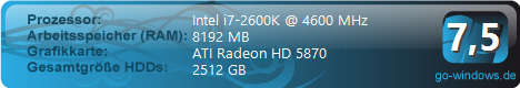 | I GAMING (von chgangster) | | CPU: | Intel Intel(R) Core(TM) i7-2600K CPU @ 3.40GHz | | RAM: | | | Grafikkarte: | 8192 MB | | · | Sinjin (von SinJin) | | CPU: | Intel Intel(R) Core(TM) i7-2600K CPU @ 3.40GHz | | RAM: | | | Grafikkarte: | 8192 MB | | | · | Ginger (von GingerGin) | | CPU: | Intel Intel(R) Core(TM) i7-2600K CPU @ 3.40GHz | | RAM: | | | Grafikkarte: | 32768 MB | | | · | Ginger (von GingerGin) | | CPU: | Intel Intel(R) Core(TM) i7-2600K CPU @ 3.40GHz | | RAM: | | | Grafikkarte: | 8192 MB | | | · | Main-PC (von Mik1) | | CPU: | Intel Intel(R) Core(TM) i7-2600K CPU @ 3.40GHz | | RAM: | | | Grafikkarte: | 12288 MB | | | · | Minilumpi (von Minilumpi) | | CPU: | Intel Intel(R) Core(TM) i7-2600K CPU @ 3.40GHz | | RAM: | | | Grafikkarte: | 12288 MB | | | · | PC (von Minilumpi) | | CPU: | Intel Intel(R) Core(TM) i7-2600K CPU @ 3.40GHz | | RAM: | | | Grafikkarte: | 12288 MB | | | · | My Pc (von D3CR7PT) | | CPU: | Intel Intel(R) Core(TM) i7-2600K CPU @ 3.40GHz | | RAM: | | | Grafikkarte: | 16384 MB | | | · | WKS (von TheCrotchyDoll) | | CPU: | Intel Intel(R) Core(TM) i7-2600K CPU @ 3.40GHz | | RAM: | | | Grafikkarte: | 16384 MB | | | · | Tower (von Solyom) | | CPU: | Intel Intel(R) Core(TM) i7-2600K CPU @ 3.40GHz | | RAM: | | | Grafikkarte: | 12288 MB | | | · | seb (von stedoo) | | CPU: | Intel Intel(R) Core(TM) i7-2600K CPU @ 3.40GHz | | RAM: | | | Grafikkarte: | 16384 MB | | | · | Mein PC :) (von rulex87) | | CPU: | Intel Intel(R) Core(TM) i7-2600K CPU @ 3.40GHz | | RAM: | | | Grafikkarte: | 12288 MB | | | · | Meins2 (von Darkman198001) | | CPU: | Intel Intel(R) Core(TM) i7-2600K CPU @ 3.40GHz | | RAM: | | | Grafikkarte: | 8192 MB | | | · | PC (von Hamsterbutcher) | | CPU: | Intel Intel(R) Core(TM) i7-2600K CPU @ 3.40GHz | | RAM: | | | Grafikkarte: | 8192 MB | | | · | TW3000 (von TW3000) | | CPU: | Intel Intel(R) Core(TM) i7-2600K CPU @ 3.40GHz | | RAM: | | | Grafikkarte: | 16384 MB | | |