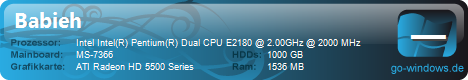 © 2025 mein-pc.eu - Babieh: MS-7366 - Intel Intel(R) Pentium(R) Dual CPU E2180 @ 2.00GHz - ATI Radeon HD 5500 Series - powered by go-windows.de