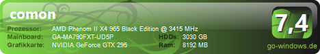 | meiner (von foxi) | | CPU: | AMD Phenom II X4 965 Black Edition | | RAM: | XFX GTX260 Black Edition | | Grafikkarte: | 4096 MB | | · | ExtremX4 (von Bk-Flash) | | CPU: | AMD Phenom II X4 965 Black Edition | | RAM: | NVIDIA GeForce 9800 GTX/9800 GTX+ | | Grafikkarte: | 4096 MB | | · | HolgAnk78 (von HolgAnk) | | CPU: | AMD Phenom(tm) II X4 955 Processor 3,2 MHz | | RAM: | NVIDIA GeForce GTX 295 | | Grafikkarte: | 4096 MB | | | · | Rechner (von stegan) | | CPU: | AMD Phenom(tm) II X4 955 Processor | | RAM: | NVIDIA GeForce GTX 295 | | Grafikkarte: | 4096 MB | | | · | .Toxin (von .Toxin) | | CPU: | AMD Phenom II X4 965 Black Edition | | RAM: | ATI Radeon HD 4800 Series | | Grafikkarte: | 8192 MB | | | · | my desktop (von csspg) | | CPU: | AMD Phenom II X4 965 Black Edition | | RAM: | | | Grafikkarte: | 4096 MB | | | · | Pinto (von pinto) | | CPU: | AMD Phenom II X4 965 Black Edition | | RAM: | NVIDIA GeForce GTX 285 | | Grafikkarte: | 8192 MB | | | · | Mein Pc (von Phantomiax3) | | CPU: | AMD Phenom II X4 965 Black Edition | | RAM: | ATI Radeon HD 5800 Series | | Grafikkarte: | 8192 MB | | | · | Disciple (von The Saint) | | CPU: | AMD Phenom II X4 965 Black Edition | | RAM: | NVIDIA GeForce 8800 GTS 512 | | Grafikkarte: | 8192 MB | | | · | AMD Phenom (von Kaito) | | CPU: | AMD Phenom II X4 965 Black Edition | | RAM: | ATI Radeon HD 5800 Series | | Grafikkarte: | 4096 MB | | | · | neu (von spider65) | | CPU: | AMD Phenom II X4 965 Black Edition | | RAM: | NVIDIA GeForce GTX 295 | | Grafikkarte: | 8192 MB | | | · | =Estado= (von =Estrado=) | | CPU: | AMD Phenom II X4 965 Black Edition | | RAM: | NVIDIA GeForce GTX 295 | | Grafikkarte: | 8192 MB | | | · | Groose (von Groose) | | CPU: | AMD Phenom II X4 965 Black Edition | | RAM: | ATI Radeon HD 4800 Series | | Grafikkarte: | 4096 MB | | |