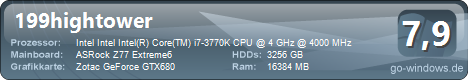 · | Matrix_1 (von Mik666) | | CPU: | Intel Intel(R) Core(TM) i7-3770K CPU @ 3.50GHz | | RAM: | 3072MB EVGA GeForce GTX 660 Ti FTW+ Aktiv PCIe 3.0 x16 (Retail) | | Grafikkarte: | 16384 MB | |