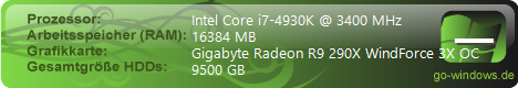 © 2025 mein-pc.eu - Intel i7 4930K/AMD R9 290X WindForce 3x: - Intel Core i7-4930K - Gigabyte Radeon R9 290X WindForce 3X OC - powered by go-windows.de