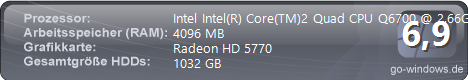 ·· | Mein Pc (alt) (von dirk1992) | | CPU: | AMD Phenom™ II X4 BE 955 | | RAM: | Club 3D ATI Radeon HD 5770 | | Grafikkarte: | 6144 MB | | · | SilentShadow (von BM_90) | | CPU: | AMD Phenom II X4 965 Black Edition | | RAM: | Powercolor Radeon HD 5770 | | Grafikkarte: | 4096 MB | | · | Mein PC (von hennie) | | CPU: | AMD FX(tm)-8150 Eight-Core Processor | | RAM: | ATI Radeon HD 5770 Series | | Grafikkarte: | 16384 MB | | ·· | Damus' PC (von Damus) | | CPU: | AMD Phenom II X4 965 Black Edition | | RAM: | ATI Radeon HD 5770 Overclocked Edition | | Grafikkarte: | 4096 MB | | · | bastard89 (von bastard) | | CPU: | AMD Phenom(tm) II X4 965 Processor | | RAM: | Powercolor Radeon HD 5770 | | Grafikkarte: | 4096 MB | | · | Haupt-Pc (von illectro) | | CPU: | AMD Phenom(tm) II X4 955 | | RAM: | ATI Radeon HD 5770 | | Grafikkarte: | 8192 MB | | · | Rammstein (von XRammsteinX) | | CPU: | AMD Phenom(tm) II X4 945 Processor | | RAM: | Radeon HD 5770 | | Grafikkarte: | 4096 MB | | · | AmasyaCihan (von AmasyaCihan) | | CPU: | Intel Intel(R) Core(TM) i5 CPU 650 @ 3.20GHz | | RAM: | Radeon HD 5770 | | Grafikkarte: | 4096 MB | | · | TITO´s System (von TITO) | | CPU: | AMD Athlon(tm) II X2 245 Processor | | RAM: | Radeon HD 5770 | | Grafikkarte: | 4096 MB | | · | Alcohol (von Alcohol) | | CPU: | AMD Phenom(tm) II X4 965 Processor | | RAM: | Radeon HD 5770 | | Grafikkarte: | 4096 MB | | · | bizz2212 (von bizz2212) | | CPU: | AMD Phenom(tm) II X4 940 Processor | | RAM: | Radeon HD 5770 | | Grafikkarte: | 4096 MB | | · | Uncut (von Uncut84) | | CPU: | AMD Phenom(tm) II X4 965 Processor | | RAM: | Radeon HD 5770 | | Grafikkarte: | 8192 MB | |