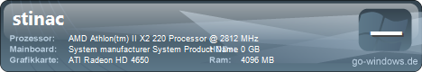© 2025 mein-pc.eu - Mein PC: - AMD Athlon(tm) II X2 220 Processor - ATI Radeon HD 4650 - powered by go-windows.de