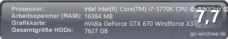 · | Intel I7 3770K (von Darkage) | | CPU: | Intel Intel(R) Core(TM) i7-3770K CPU @ 3.50GHz | | RAM: | INNO3D iChill GeForce® GTX 1070 X3 | | Grafikkarte: | 8192 MB | | ·· | Amok68 (von Amok68) | | CPU: | Intel Intel(R) Core(TM) i7-3770K CPU @ 3.50GHz | | RAM: | GeForce RTX-2080 Ti | | Grafikkarte: | 16384 MB | | · | Mein PC 2012 (von renesweb) | | CPU: | Intel Intel(R) Core(TM) i7-3770K CPU @ 3.50GHz | | RAM: | nVidia GeForce GTX 670 Windforce X3 | | Grafikkarte: | 16384 MB | | ·· | Mein Gaming Pc (von freak66292) | | CPU: | Intel Intel(R) Core(TM) i7-3770K CPU @ 3.50GHz | | RAM: | NVIDIA GeForce GTX680-DC2T | | Grafikkarte: | 16384 MB | | · | W4LK0R (von W4LK0R) | | CPU: | Intel Intel(R) Core(TM) i7-3770K CPU @ 3.50GHz | | RAM: | GTX 680 DC2 (selbst OC) | | Grafikkarte: | 16384 MB | | · | Matrix_1 (von Mik666) | | CPU: | Intel Intel(R) Core(TM) i7-3770K CPU @ 3.50GHz | | RAM: | 3072MB EVGA GeForce GTX 660 Ti FTW+ Aktiv PCIe 3.0 x16 (Retail) | | Grafikkarte: | 16384 MB | | · | Gamer PC v2 (von Frostdead) | | CPU: | Intel Intel(R) Core(TM) i7-3770K CPU @ 3.50GHz | | RAM: | Asus GeForce GTX 770 DirectCU II OC | | Grafikkarte: | 8192 MB | | · | PC (von Kaikoo) | | CPU: | Intel Intel(R) Core(TM) i7-3770K CPU @ 3.50GHz | | RAM: | MSI N680GTX (MS-V282) | | Grafikkarte: | 16384 MB | | ··· | PC (von LordKante) | | CPU: | Intel Intel(R) Core(TM) i7-3770K CPU @ 3.50GHz | | RAM: | nVidia GeForce GTX 980 | | Grafikkarte: | 16384 MB | | · | Gaming PC (von Sp4wN) | | CPU: | Intel Intel(R) Core(TM) i7-3770K CPU @ 3.50GHz | | RAM: | ATI Radeon | | Grafikkarte: | 16384 MB | |