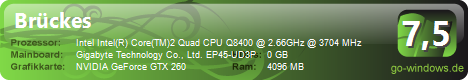 © 2025 mein-pc.eu - Mein Rechenknabe: - Intel Intel(R) Core(TM)2 Quad CPU Q8400 @ 2.66GHz - NVIDIA GeForce GTX 260 - powered by go-windows.de