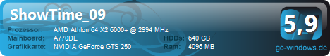 | Power (von DarkEarth) | | CPU: | AMD Athlon 64 X2 6000+ | | RAM: | NVIDIA GeForce GTS 250 | | Grafikkarte: | 4096 MB | | | · | xSkyCaptain<3 (von Yuk) | | CPU: | AMD Phenom(tm) II X4 955 Processor | | RAM: | NVIDIA GeForce GTS 250 | | Grafikkarte: | 2048 MB | | | · | Laito Desktop (von Laito) | | CPU: | AMD Athlon 64 X2 6000+ | | RAM: | NVIDIA GeForce GTS 250 | | Grafikkarte: | 4096 MB | | | · | Athlon (von Kevneu1502) | | CPU: | AMD Athlon 64 X2 6000+ | | RAM: | NVIDIA GeForce GTS 250 | | Grafikkarte: | 4096 MB | | | · | Mein PC (von Nessaja) | | CPU: | AMD Athlon 64 X2 6000+ | | RAM: | NVIDIA GeForce GTS 250 | | Grafikkarte: | 4096 MB | | | · | jou (von xvivanx) | | CPU: | AMD Athlon 64 X2 6000+ | | RAM: | NVIDIA GeForce GTS 250 | | Grafikkarte: | 3072 MB | | | · | icefall (von icefall) | | CPU: | AMD Phenom II Black Edition | | RAM: | NVIDIA GeForce GTS 250 | | Grafikkarte: | 3072 MB | | | · | Game Rig (von ray891) | | CPU: | AMD Athlon 64 X2 6000+ | | RAM: | NVIDIA GeForce GTS 250 | | Grafikkarte: | 3072 MB | | | · | tScHaBo (von tScHaBo) | | CPU: | AMD Athlon 64 X2 6000+ | | RAM: | NVIDIA GeForce GTS 250 | | Grafikkarte: | 2048 MB | | | · | Pc1 (von Toxic) | | CPU: | AMD Athlon 64 X2 6000+ | | RAM: | NVIDIA GeForce GTS 250 | | Grafikkarte: | 3072 MB | | | · | Freezebude (von 2more) | | CPU: | AMD Athlon 64 X2 6000+ | | RAM: | NVIDIA GeForce 8800 GT | | Grafikkarte: | 4096 MB | | | · | GeFFi's PC (von GeFFi) | | CPU: | AMD Athlon 64 X2 6000+ | | RAM: | NVIDIA GeForce GTS 250 | | Grafikkarte: | 3072 MB | | |