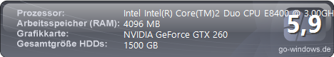 | bla1 (von Bullterrier) | | CPU: | Intel Intel(R) Core(TM)2 Duo CPU E8400 @ 3.00GHz | | RAM: | NVIDIA GeForce GTX 260 | | Grafikkarte: | 4096 MB | | | ·· | cryx (von CryX) | | CPU: | Intel Intel(R) Core(TM)2 Duo CPU E8400 @ 3.00GHz | | RAM: | NVIDIA GeForce GTX 260 | | Grafikkarte: | 4096 MB | | | · | Pazan0 (von pazan0) | | CPU: | Intel Intel(R) Core(TM)2 Duo CPU E8400 @ 3.00GHz | | RAM: | NVIDIA GeForce GTX 260 | | Grafikkarte: | 4096 MB | | | · | BlÄcKs Kiste (von BlÄcK) | | CPU: | Intel Intel(R) Core(TM)2 Duo CPU E8400 @ 3.00GHz | | RAM: | NVIDIA GeForce GTX 260 | | Grafikkarte: | 5120 MB | | | · | New System (von Benz) | | CPU: | Intel Intel(R) Core(TM)2 Duo CPU E8400 @ 3.00GHz | | RAM: | NVIDIA GeForce GTX 260 | | Grafikkarte: | 4096 MB | | | · | MaYo (von MaYo13) | | CPU: | Intel Intel(R) Core(TM)2 Duo CPU E8400 @ 3.00GHz | | RAM: | NVIDIA GeForce GTX 260 | | Grafikkarte: | 4096 MB | | | · | Imperator (von BeelzeBuB) | | CPU: | Intel Intel(R) Core(TM)2 Duo CPU E8400 @ 3.00GHz | | RAM: | NVIDIA GeForce GTX 260 | | Grafikkarte: | 4096 MB | | | · | Home (von Destination) | | CPU: | Intel Intel(R) Core(TM)2 Duo CPU E8400 @ 3.00GHz | | RAM: | NVIDIA GeForce GTX 260 | | Grafikkarte: | 4096 MB | | | · | ASUS GTX DiamonD (von Poison_V) | | CPU: | Intel Intel(R) Core(TM)2 Duo CPU E8400 @ 3.00GHz | | RAM: | NVIDIA GeForce GTX 260 | | Grafikkarte: | 3072 MB | | | · | Don's PC (von Der Don) | | CPU: | Intel Intel(R) Core(TM)2 Duo CPU E8400 @ 3.00GHz | | RAM: | NVIDIA GeForce GTX 260 | | Grafikkarte: | 2048 MB | | | · | ASUS GTX PoisonV (von Poison_V) | | CPU: | Intel Intel(R) Core(TM)2 Duo CPU E8400 @ 3.00GHz | | RAM: | NVIDIA GeForce GTX 260 | | Grafikkarte: | 3072 MB | | | · | My Pc (von sn4p) | | CPU: | Intel Intel(R) Core(TM)2 Duo CPU E8400 @ 3.00GHz | | RAM: | NVIDIA GeForce GTX 260 | | Grafikkarte: | 4096 MB | | | · | BenQ (von Stoi) | | CPU: | Intel Intel(R) Core(TM)2 Duo CPU E8400 @ 3.00GHz | | RAM: | NVIDIA GeForce GTX 260 | | Grafikkarte: | 8192 MB | | | · | 1 (von DerKani) | | CPU: | Intel Intel(R) Core(TM)2 Duo CPU E8400 @ 3.00GHz | | RAM: | NVIDIA GeForce GTX 260 | | Grafikkarte: | 2048 MB | | |