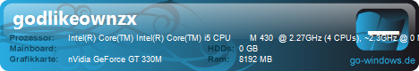 © 2025 mein-pc.eu - Toshiba: - Intel(R) Core(TM) Intel(R) Core(TM) i5 CPU M 430 @ 2.27GHz (4 CPUs), ~2.3GHz - nVidia GeForce GT 330M - powered by go-windows.de