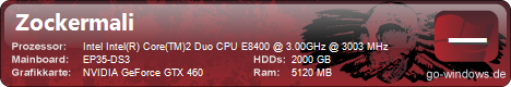 © 2025 mein-pc.eu - Zockermali: EP35-DS3 - Intel Intel(R) Core(TM)2 Duo CPU E8400 @ 3.00GHz - NVIDIA GeForce GTX 460 - powered by go-windows.de