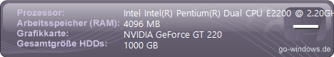 © 2025 mein-pc.eu - demaxx: - Intel Intel(R) Pentium(R) Dual CPU E2200 @ 2.20GHz - NVIDIA GeForce GT 220 - powered by go-windows.de
