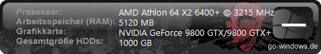 © 2025 mein-pc.eu - igor SPQR: - AMD Athlon 64 X2 6400+ - NVIDIA GeForce 9800 GTX/9800 GTX+ - powered by go-windows.de