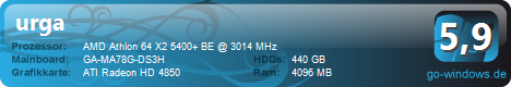 · | Magnus-PC (von magnus16) | | CPU: | Intel Intel(R) Core(TM)2 Quad CPU Q8400 @ 2.66GHz | | RAM: | ATI Radeon HD 4850 | | Grafikkarte: | 3072 MB | | · | Lanbox (von Blacky2402) | | CPU: | AMD Phenom(tm) II X3 720 Processor | | RAM: | ATI Radeon HD 4850 | | Grafikkarte: | 3072 MB | | ·· | iMac 27 i7 (von Pirated) | | CPU: | Intel Intel(R) Core(TM) i7 CPU 860 @ 2.80GHz | | RAM: | ATI Radeon HD 4850 | | Grafikkarte: | 16384 MB | | · | Red Tank (von XeoViruX) | | CPU: | AMD Athlon 64 X2 6000+ | | RAM: | ATI Radeon HD 4850 | | Grafikkarte: | 4096 MB | | · | mei hittn (von L0rd) | | CPU: | AMD Phenom(tm) II X4 955 Processor | | RAM: | ATI Radeon HD 4850 Series | | Grafikkarte: | 8192 MB | | · | RoyaL (von BloodRoyaLe) | | CPU: | AMD Athlon 64 X2 4200+ | | RAM: | ATI Radeon HD 4850 | | Grafikkarte: | 4096 MB | | · | Acer (von magnum55) | | CPU: | AMD Phenom | | RAM: | ATI Radeon HD 4850 x2 | | Grafikkarte: | 0 MB | | | · | Mein PC (von Amex0) | | CPU: | AMD Phenom(tm) 9850 Quad-Core Processor | | RAM: | ATI Radeon HD 3200 Graphics | | Grafikkarte: | 4096 MB | | | · | KingKenny (von KingKenny9977) | | CPU: | AMD Phenom(tm) II X4 965 Processor | | RAM: | ATI Radeon HD 4850 X2 | | Grafikkarte: | 12288 MB | | | ·· | MyOne (von Nop0x) | | CPU: | AMD Phenom(tm) II X3 720 Processor | | RAM: | ATI Radeon HD 4800 Series | | Grafikkarte: | 4096 MB | | | ·· | Mein PC (von lutzii2) | | CPU: | AMD Phenom(tm) 9950 Quad-Core Processor | | RAM: | AMD Radeon HD 6800 Series | | Grafikkarte: | 4096 MB | | |